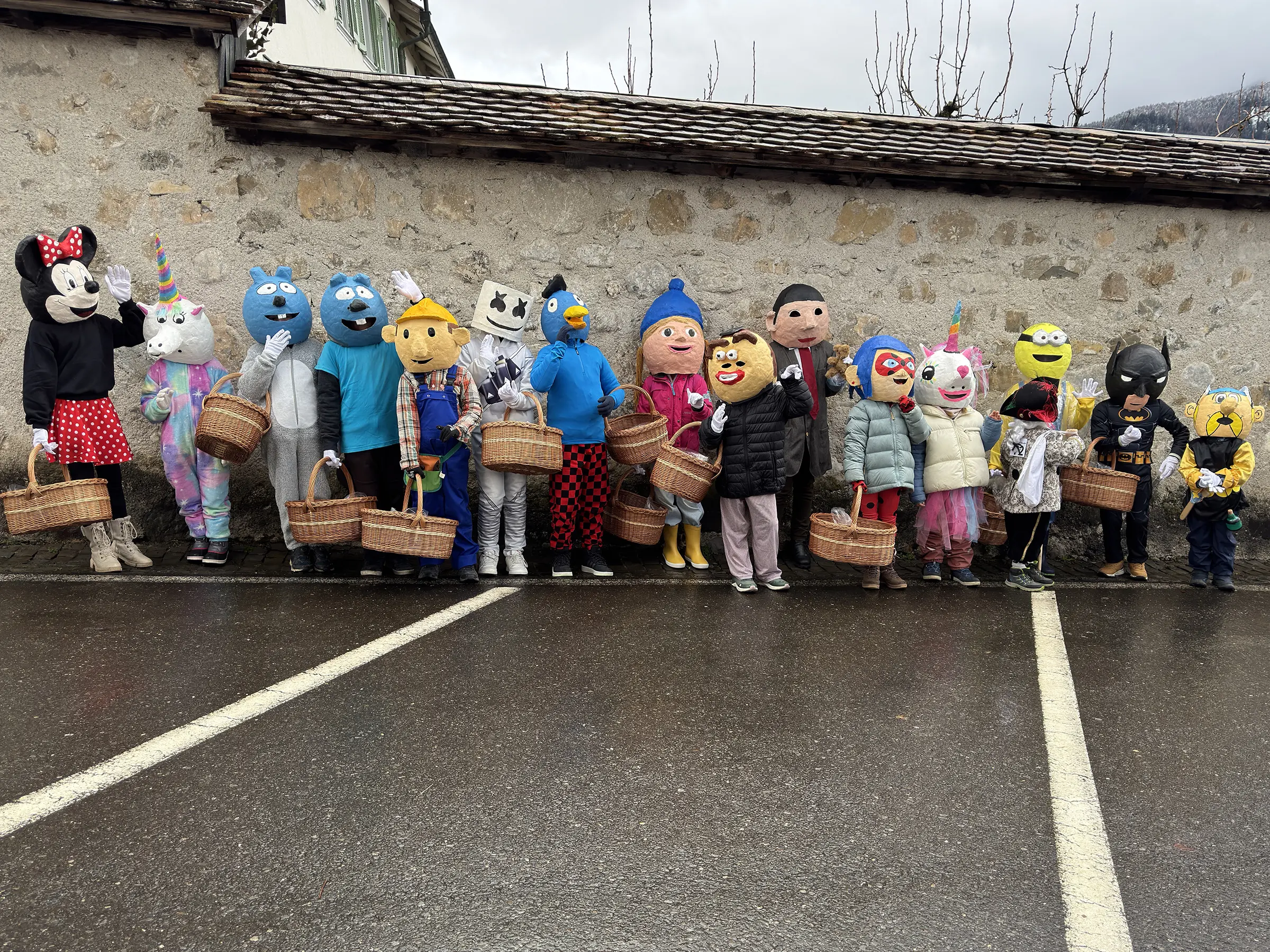 Da dieses Jahr die eigentliche Fasnacht ins Wasser fiel, besuchten wir am Morgen die Kinder der Schulkreise Herrengasse und Lücken, am Nachmittag die Bewohnerinnen und Bewohner des Alterszentrum Acherhof. Rund 600 Spenden – ein Säckli, gefüllt mit Wurst, Brot & etwas Süssem – konnten wir so an Gross und Klein verteilen.